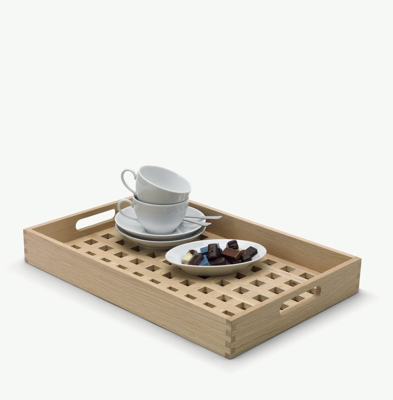 Brettet er ideelt for vanlige porsjoner i hverdagen og på fester på grunn av størrelsen og samtidig er det lett og stabil å håndtere. Og grepet er skåret inn i enden av brettet slik at det er enkelt å løfte fra bordet.