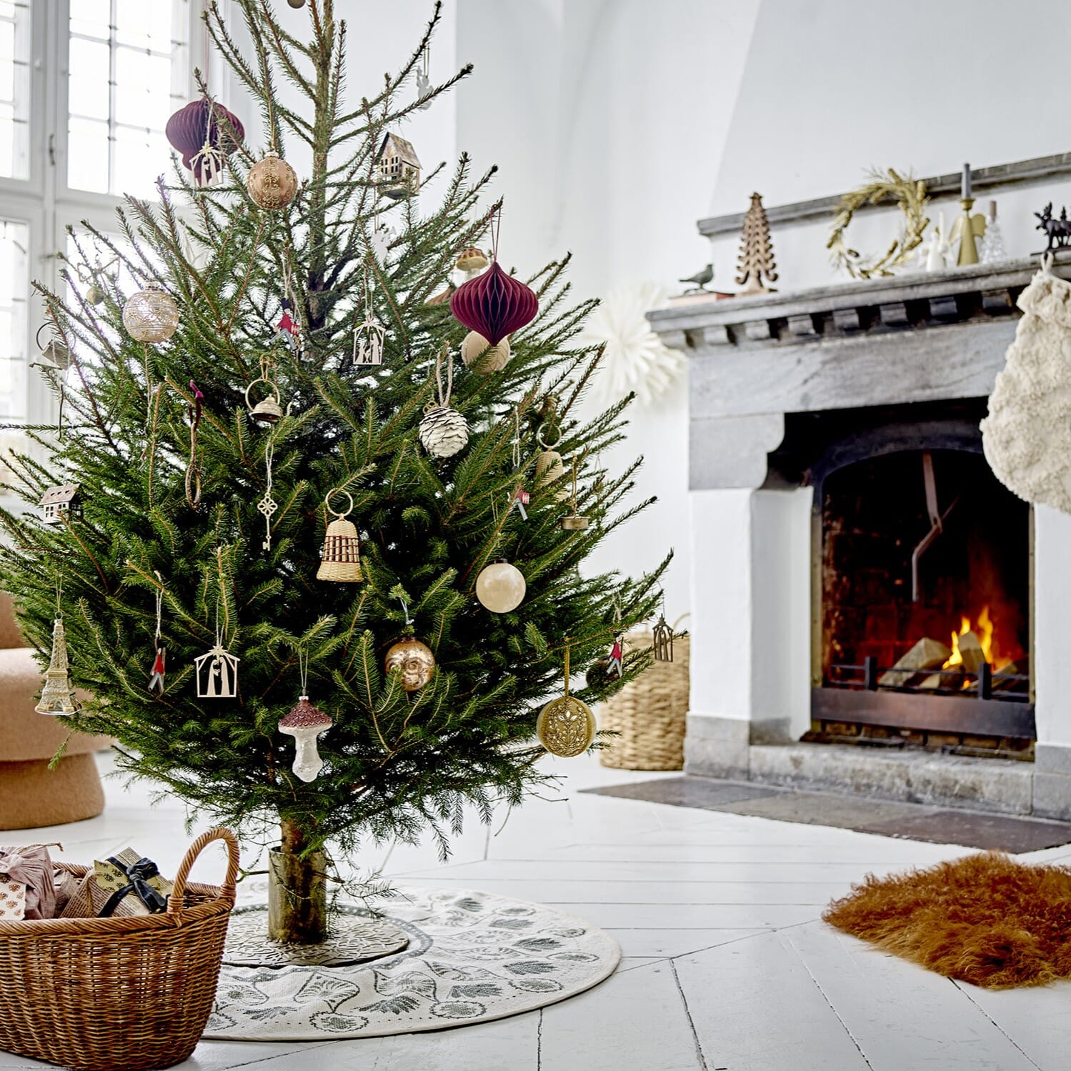 Dans rundt juletreet med Marian Juletreteppe fra Bloomingville. Teppet kommer i en lys nyanse med et grønt og juleinspirert mønster. Plasser det under juletreet for å skape en ekstra koselig stemning.