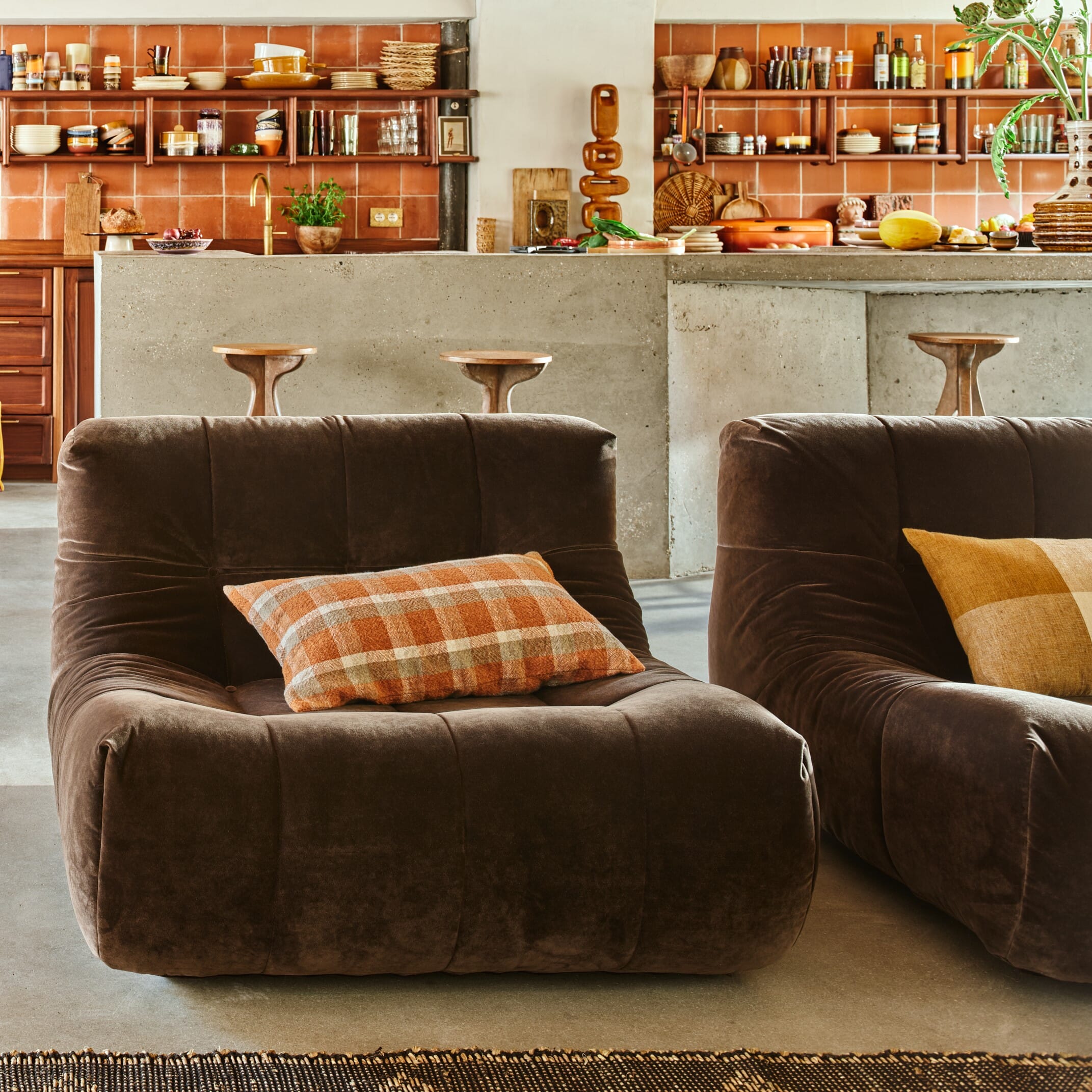 Skap den ultimate retro bungalow-følelsen i hjemmet ditt. Den avslappede komforten og de organiske mønstrene gjør denne vevde putekolleksjonen svært populær og tidløs. De varme fargene og de myke trekkene legger til en innbydende touch til enhver sofakrok.
