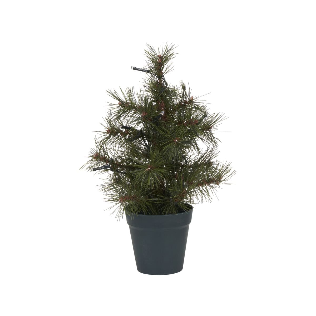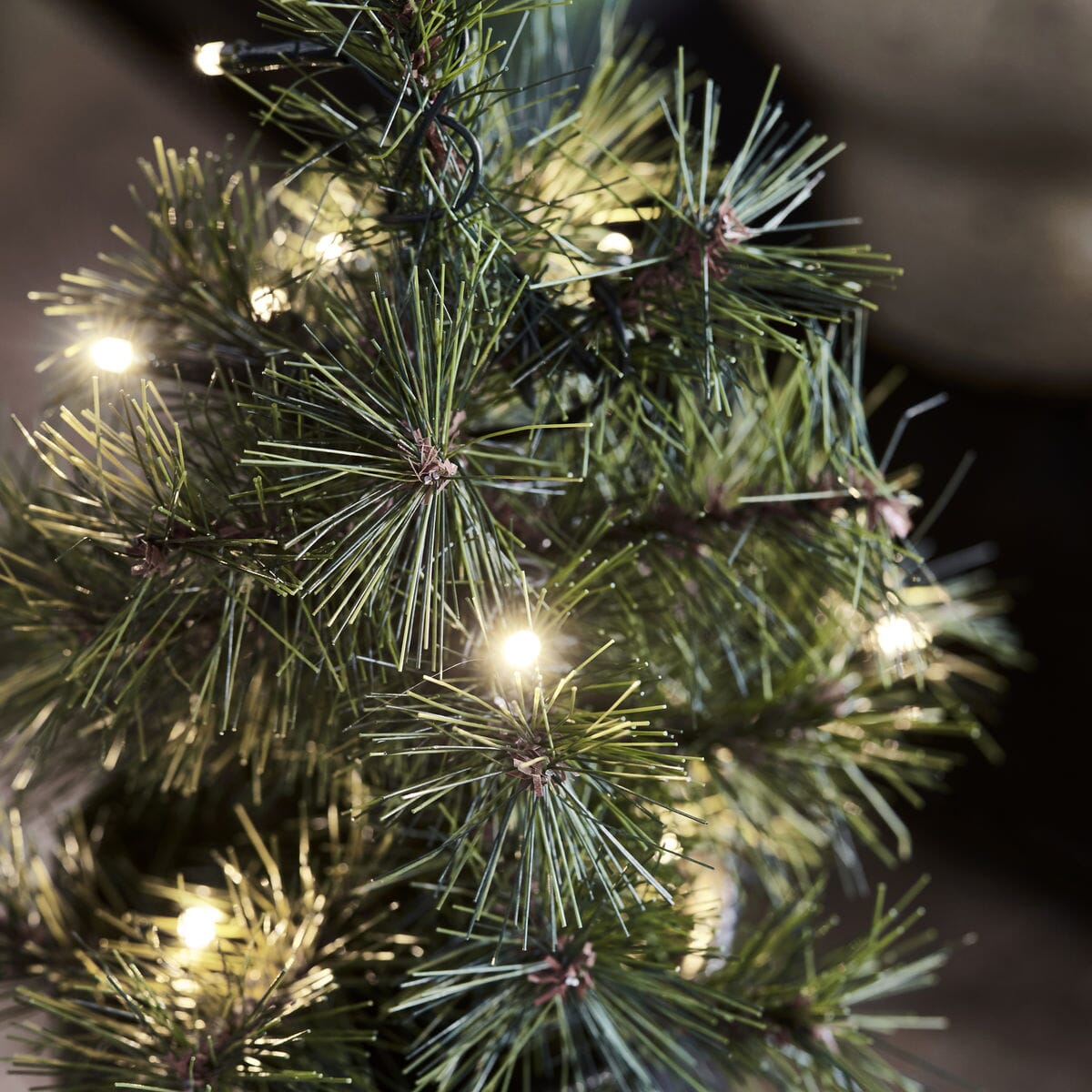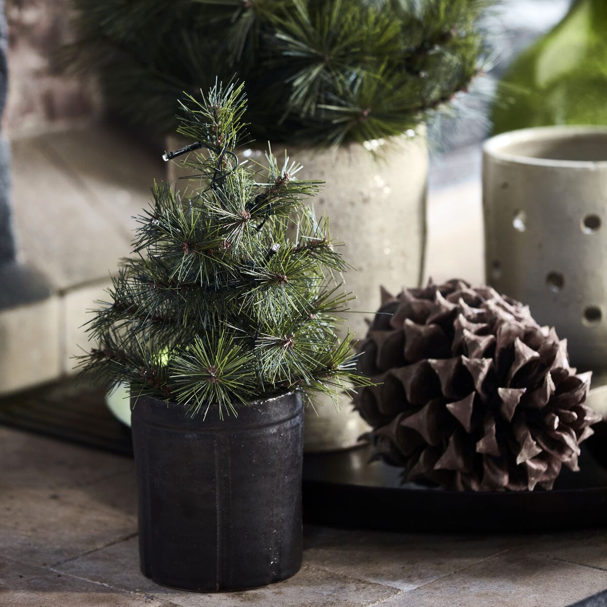 Et juletre er ikke bare ment å stå på bakken. Gi hyllen eller bordet ditt et festlig preg med dette lille, kunstige juletreet fra House Doctor. Utstyrt med 10 LED-lys, vil den lyse opp stuen din og skape en varm atmosfære gjennom hele desember måned. Det lille treet som heter Pinus kan enkelt bli en del av innredningen din. Plasser det i yndlingskrukken din og la den pynte på bordet, i hyllen eller vinduskarmen med lysestaker og vaser. Finnes også i en større størrelse. Obs: Batterier følger ikke med.
