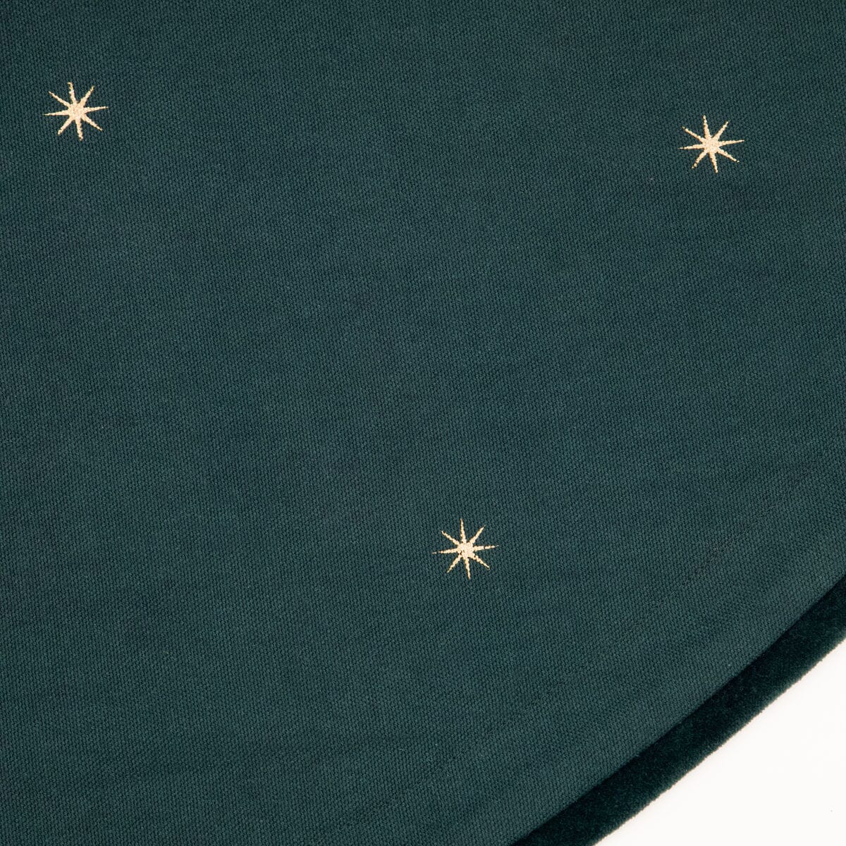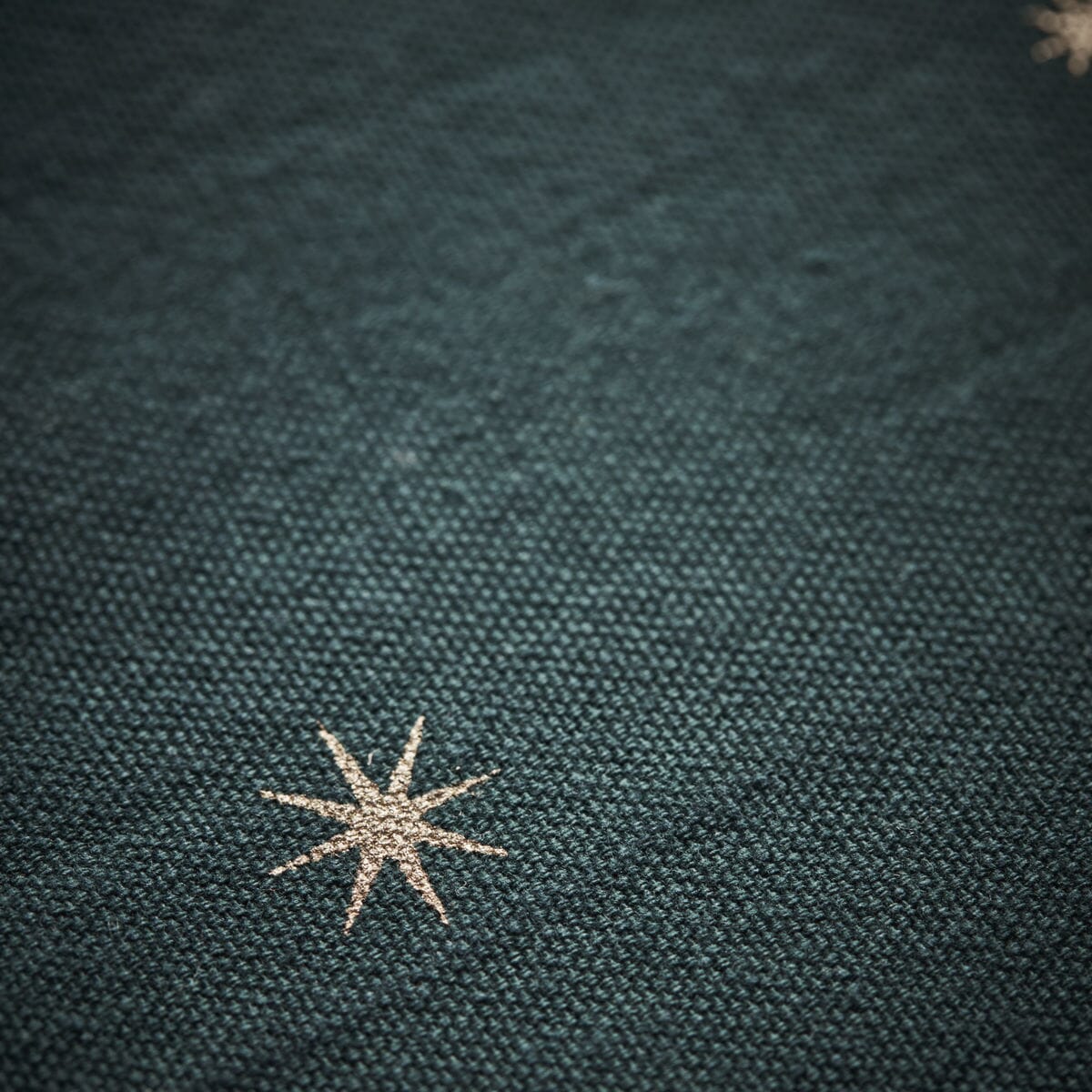 Med dette juletreteppet av bomull fra House Doctor kan du virkelig sette juletreet og alle gavene i sentrum. Det skaper en vintage-inspirert stemning med sin dype grønne farge, stjernemønster og fløyelskant. Et design som kan brukes år etter år og matches med alle slags fargekombinasjoner. Enten det er gulltoner og beroligende nøytrale farger eller den klassiske kombinasjonen av grønt og blått.