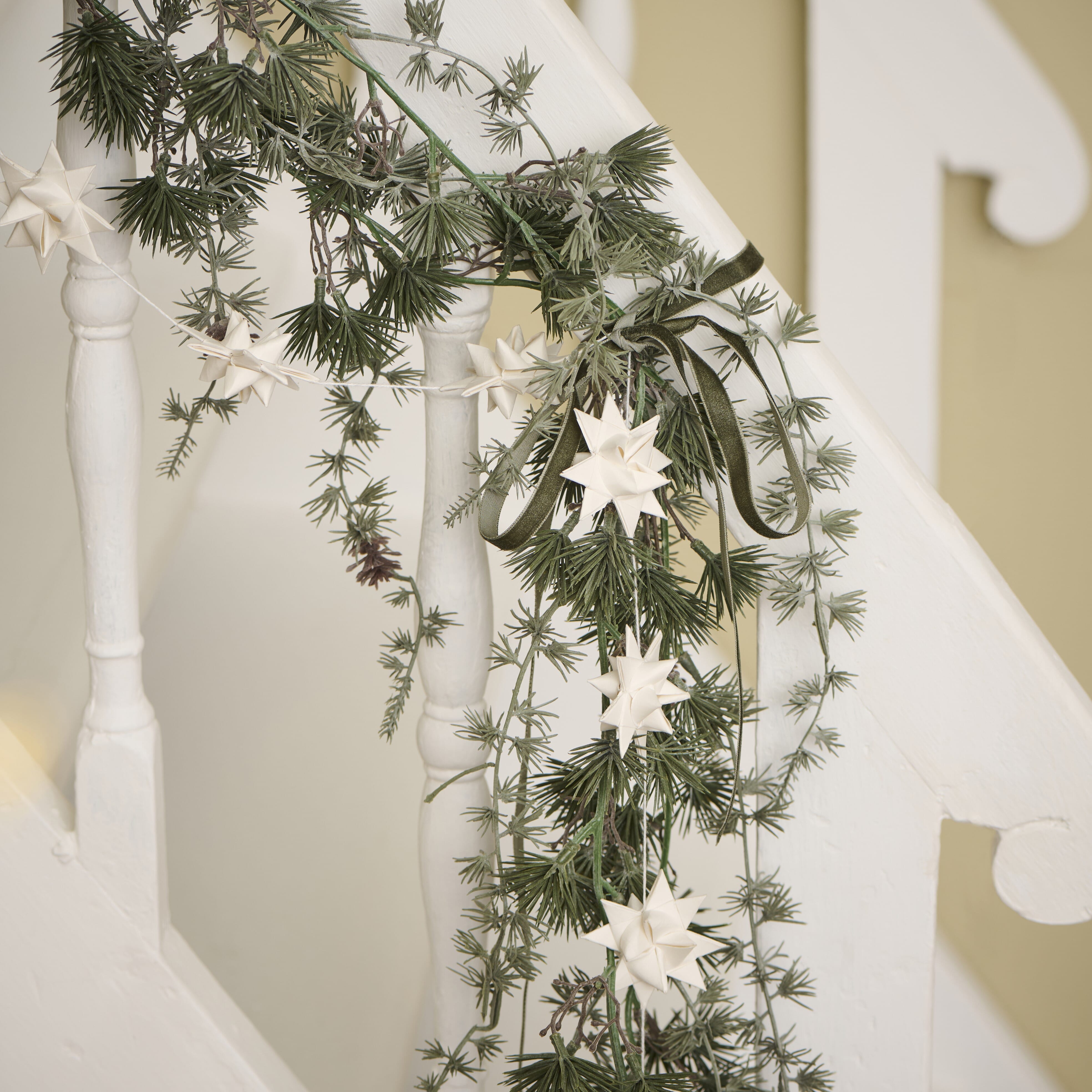 Flott ranke med 12 papir flettede stjerner.
