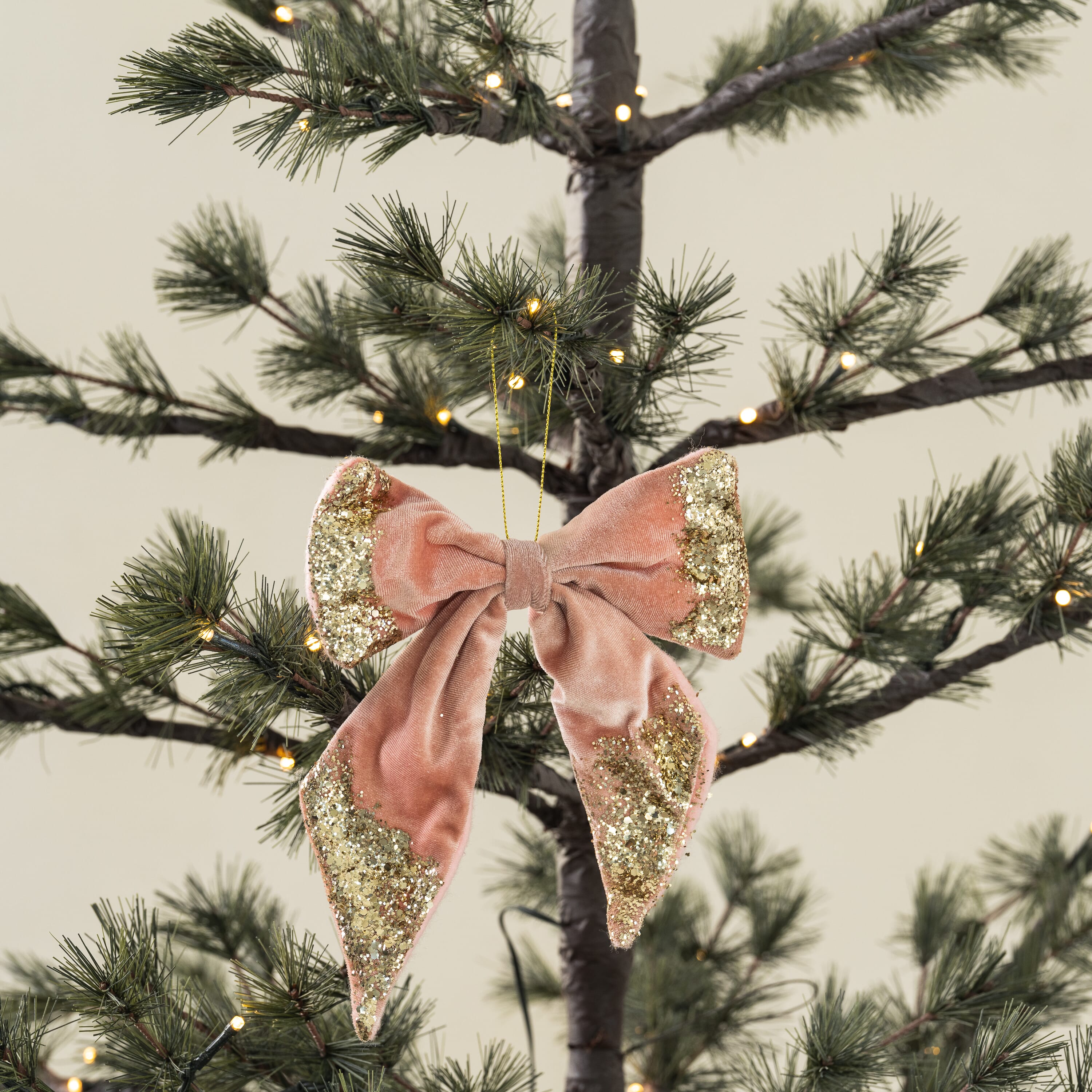 Denne rosa sløyfen med glitrende detaljer er et perfekt tillegg til julepynten. Laget av myk fløyel med gullglitter på kantene, fanger denne sløyfen lyset på en nydelig måte og gir juletreet ditt et ekstra luksuriøst preg. Den varme rosafargen tilfører et moderne og lekent element som skiller seg ut fra tradisjonell julepynt.