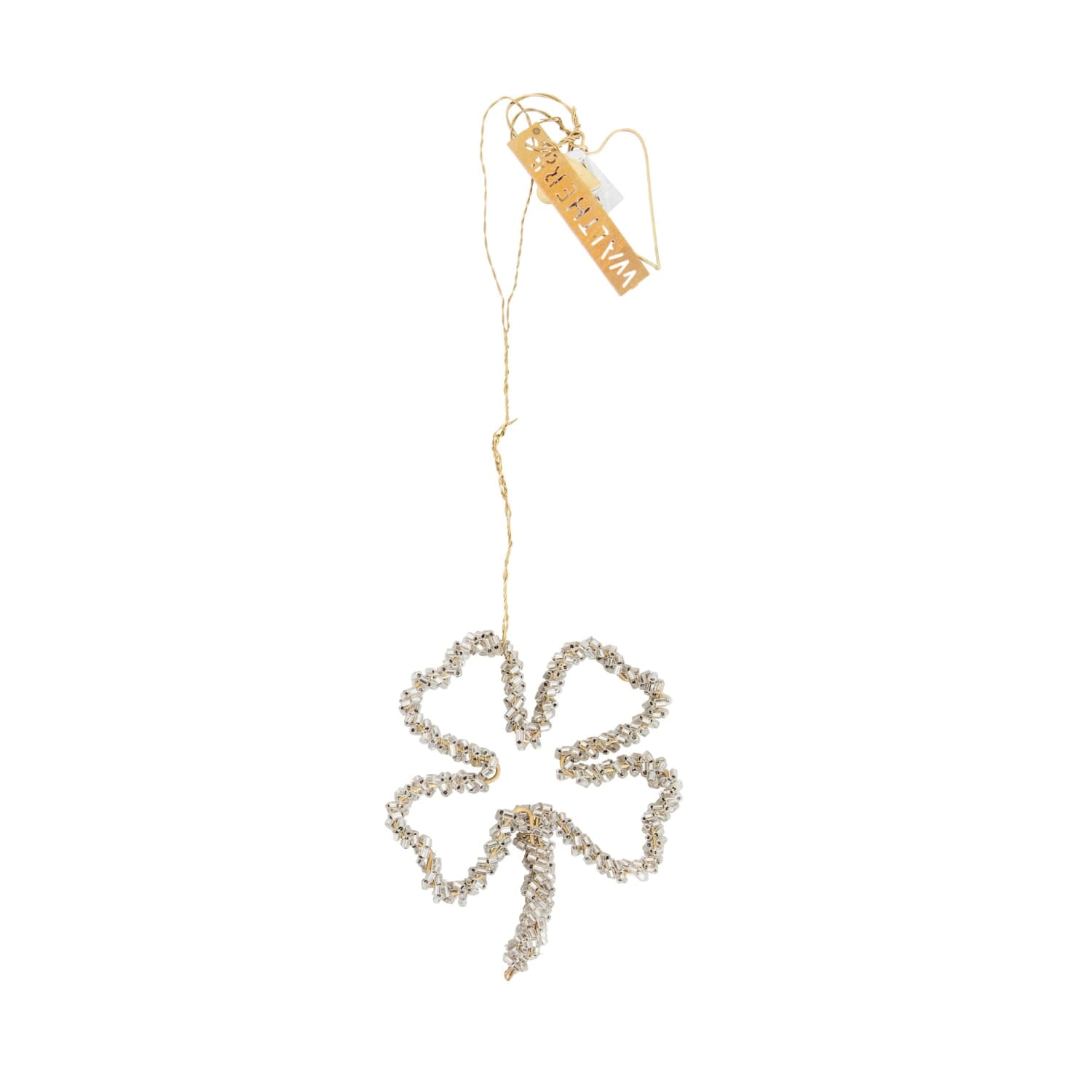 Den klassiske kløverformen er håndlaget og dekorert med sølvglitrende perler som fanger lyset på en vakker måte. Med sitt lette og luftige uttrykk henger den grasiøst på treet og tilfører en tidløs eleganse til julepynten din.